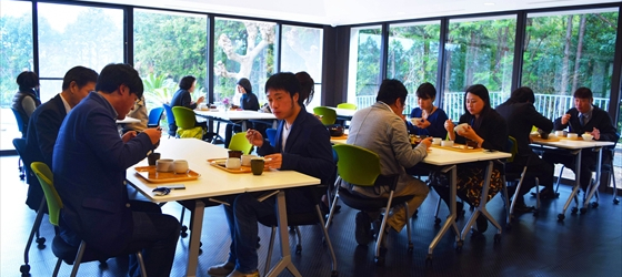 イノベーション・オフィスの方にも地域の方々にも利用して頂けるように、くおり亭(社員食堂)を一般解放しています。紀伊水道、綺麗な水と豊かな自然。