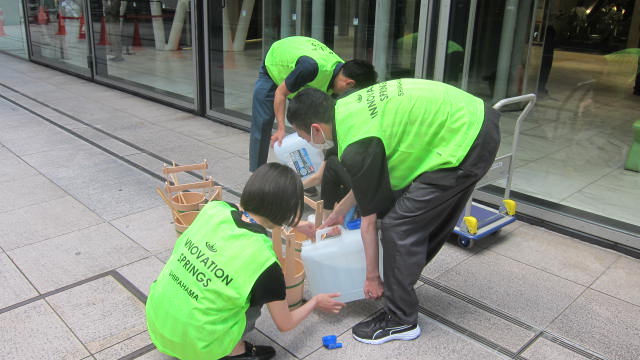 当社社員は「水道フェア2025」にて開催された打ち水イベントにて、桶やひしゃくの準備、観客・通行人の方々の交通整理などといった、運営サポートを担当しました。